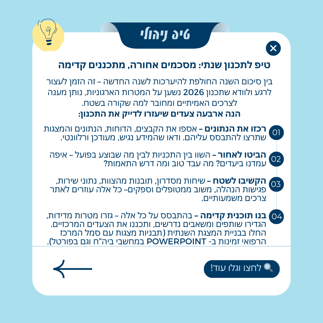 טיפ מספר 7 - טיפ לתכנון שנתי: מסכמים אחורה, מתכננים קדימה