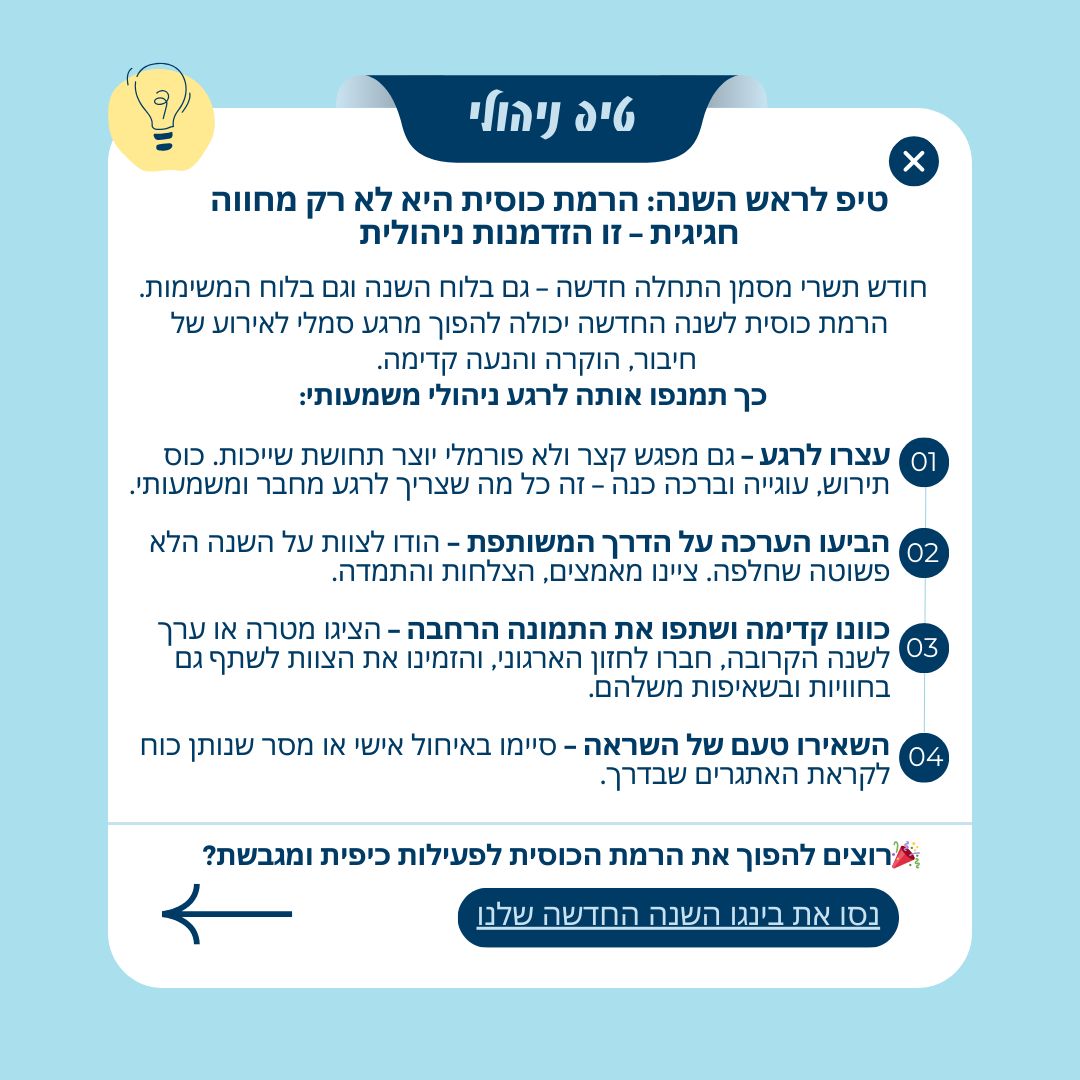 טיפ מספר 6 - טיפ לראש השנה: הרמת כוסית היא לא רק מחווה חגיגית - זו הזדמנות ניהולית
